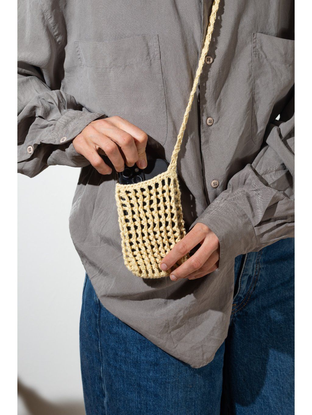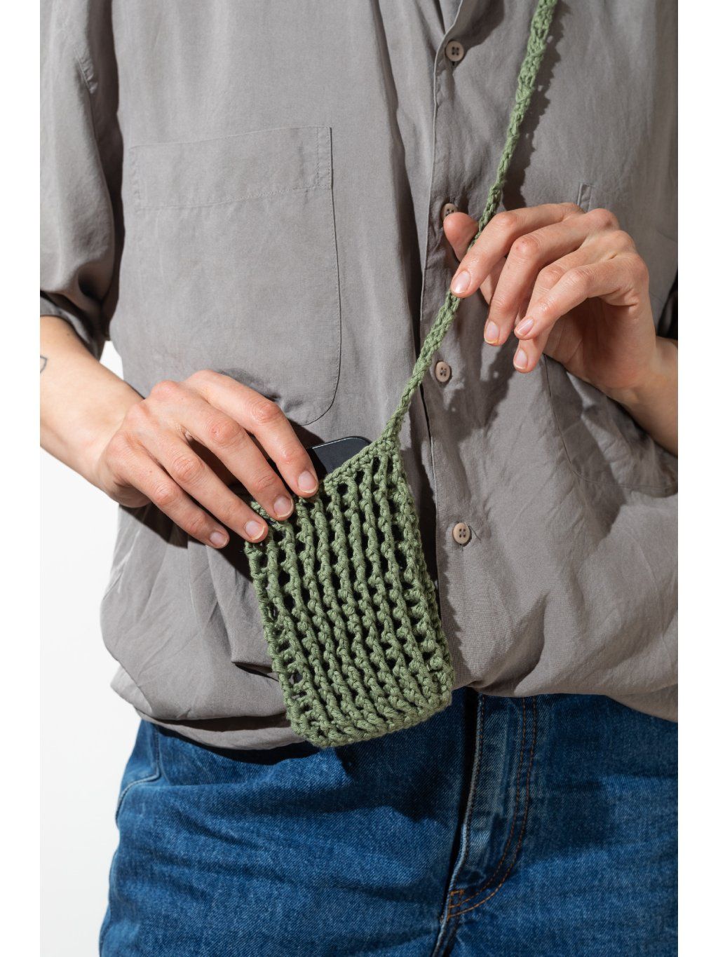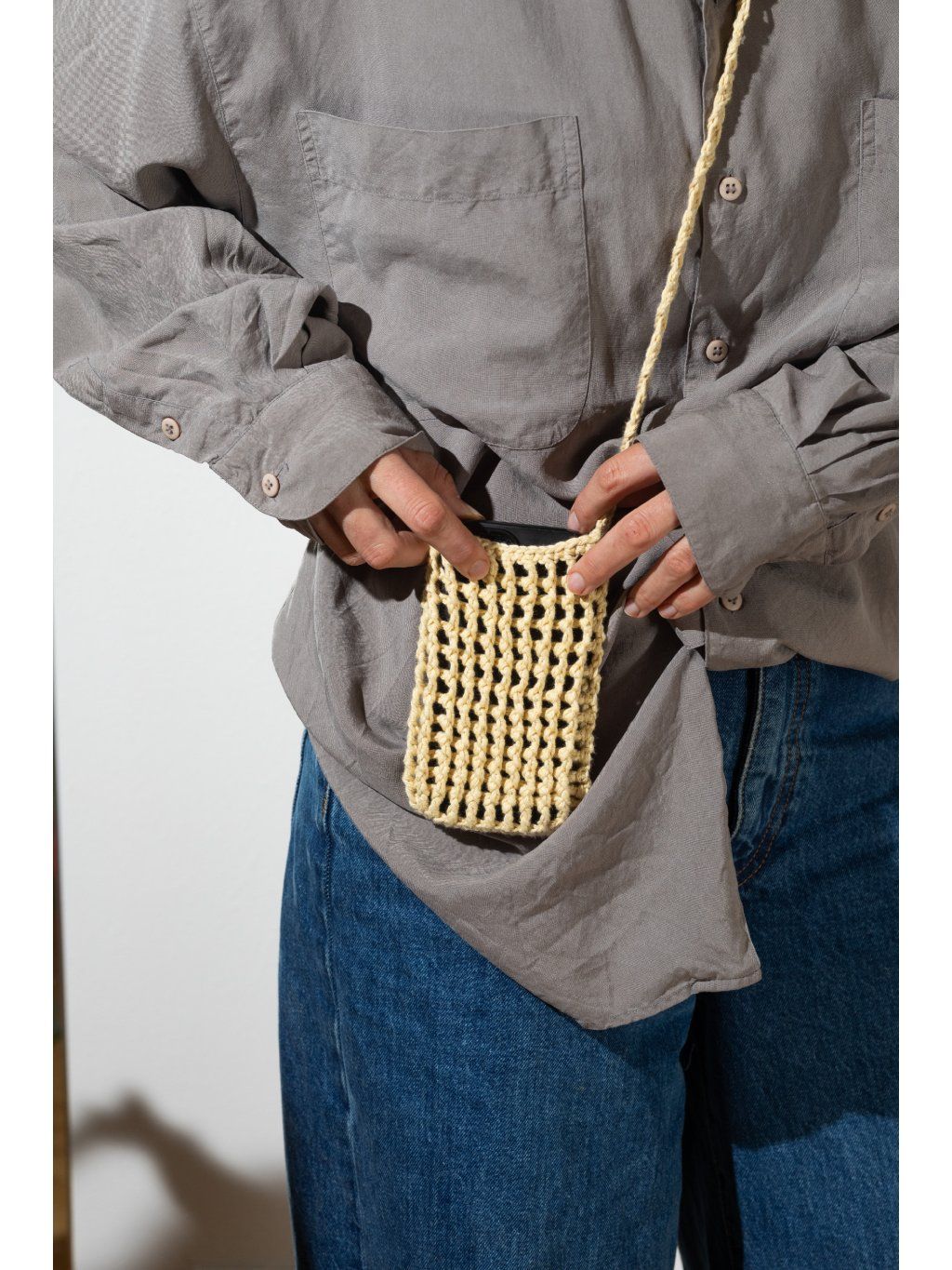 Babi bag je ikonická háčkovaná taštička na mobil, kterou nesundáš od jara do podzimu. Z práce na hřiště, z plovárny na festival a z kafe rovnou k vínu. Bude všude tam, kde ji potřebuješ. Lehká, praktická a vždycky po ruce. Každý kus je ručně háčkovaný ze 100% bavlny, takže je nejen originální, ale i příjemný na dotek. Díky pečlivému zpracování je taštička pevná, pohodlná na nošení a vydrží víc než jednu sezónu. ✔️ ruční výroba našich pletařek ✔️ 100% bavlna✔️ celé léto ji nesundáš 📏 Rozměry: cca 15 × 9 cm 📏 Celková délka ucha je přibližně 100 cm. Použitá příze má certifikát Oeko-Tex® (číslo 951032), Standard 100, Class I. To znamená, že byla testována a je zcela bez obsahu nebezpečných i škodlivých chemikálií, takže ji můžeš bez obav používat i při každodenním nošení.