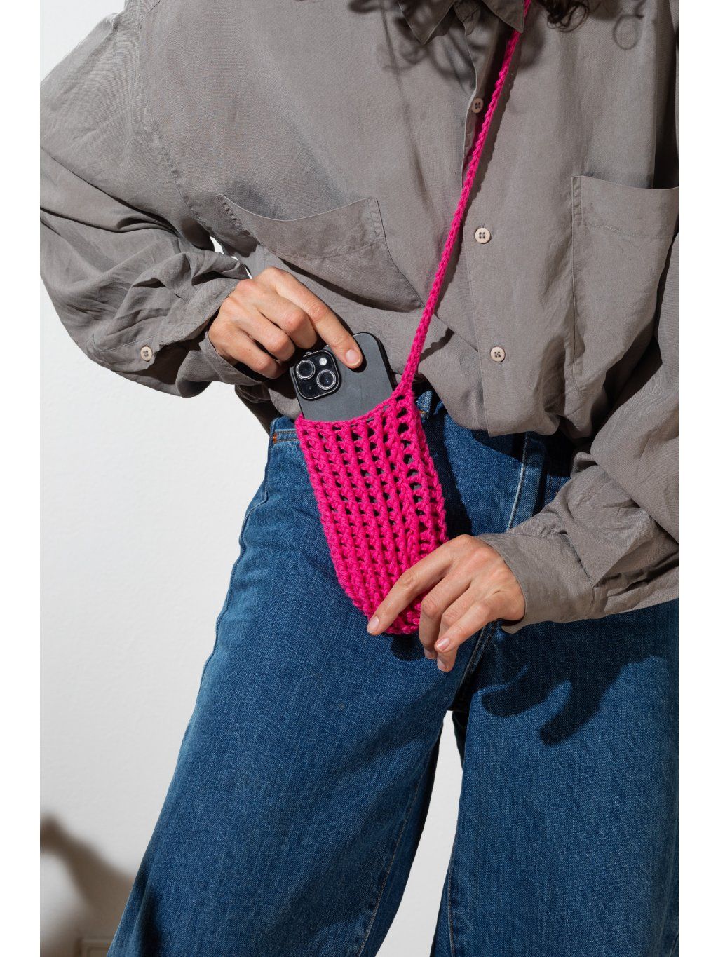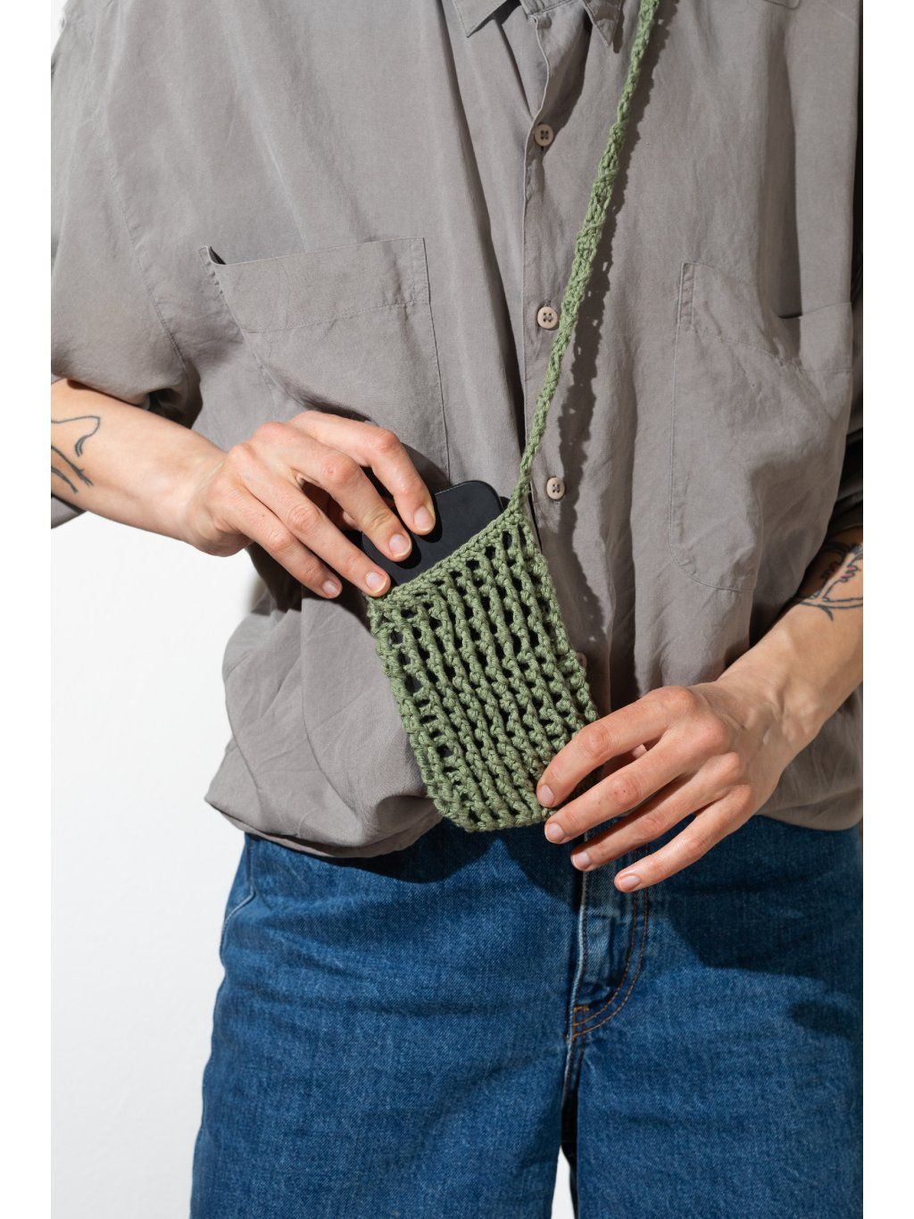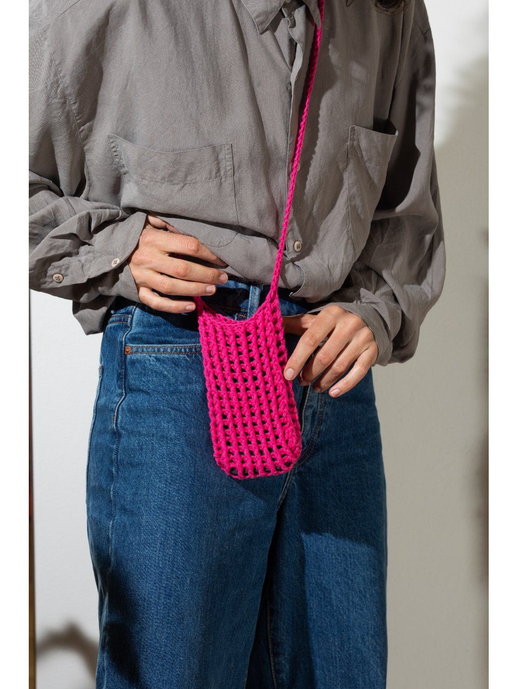 Babi bag je ikonická háčkovaná taštička na mobil, kterou nesundáš od jara do podzimu. Z práce na hřiště, z plovárny na festival a z kafe rovnou k vínu. Bude všude tam, kde ji potřebuješ. Lehká, praktická a vždycky po ruce. Každý kus je ručně háčkovaný ze 100% bavlny, takže je nejen originální, ale i příjemný na dotek. Díky pečlivému zpracování je taštička pevná, pohodlná na nošení a vydrží víc než jednu sezónu. ✔️ ruční výroba našich pletařek ✔️ 100% bavlna✔️ celé léto ji nesundáš 📏 Rozměry: cca 15 × 9 cm 📏 Celková délka ucha je přibližně 100 cm. Použitá příze má certifikát Oeko-Tex® (číslo 951032), Standard 100, Class I. To znamená, že byla testována a je zcela bez obsahu nebezpečných i škodlivých chemikálií, takže ji můžeš bez obav používat i při každodenním nošení.